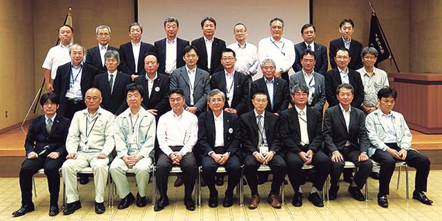 日本植生(岡山県津山市)が開発したソイルクリート工法の施工会社でつくる、簡易吹付法枠協会(柴田和正…