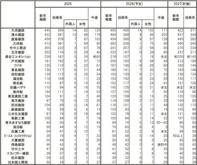 【高水準維持も早期化の負担大/2年で1000人増/ゼネコン】 建設産業の採用増加の勢いが一段と強まっ…