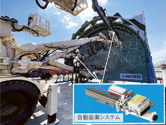 前田建設は、山岳トンネル工事を対象として、自動装薬システムを搭載した「3ブーム自動装薬専用機」を開…
