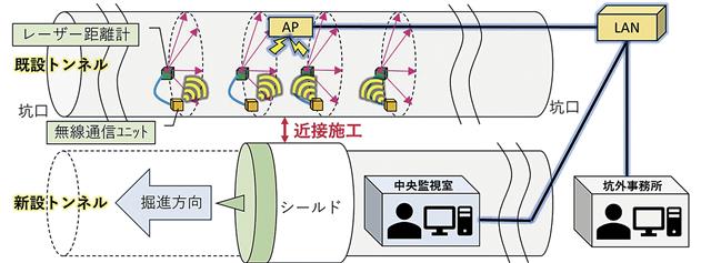 上下線の最小離隔が380mmの併設トンネル工事である首都圏中央連絡自動車道の「横浜環状南線桂台トンネル工事」(発注者=NEXCO東日本関東支社)に適用し、計測精度や作業性などに優れることを確認した。