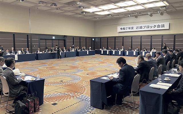 2府5県の建設業協会で構成する近畿建設業団体協議会(幹事・中井賢次和歌山建協会長)は16日、和歌山市のホテルグランヴィア和歌山で2025年度近畿ブロック会議を開いた=写真。国土強靱化実施中期計画については、現在示されている「事業規模5年20兆円強」にとどまらない大幅な上積みを要望。猛暑時期の歩掛かりの見直しなど熱中症対策の充実も働き掛けた。