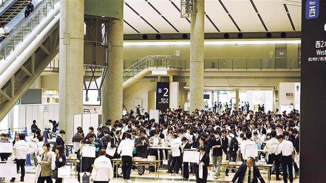 11日正午、東京ビッグサイト。傘を打つ雨音が響く中、リクルートスーツ姿の大学生が、巨大な展示会場に吸い寄せられるように集まっていた。「どうしても早期化トレンドに引っ張られる。勉強したい学生には厳しい状況だ」と話すのは建築系の修士1年生。専攻はユニバーサルデザイン。小さい頃から家族の介護を見てきた。誰もが使いやすい空間を学ぼうと、学部・院への進学を決めた。ただ、直後の6月ごろには夏季インターンシップのエントリーシート作成に追われるようになっていった。「本音を言うと、もう少し遅くしてほしい」と小声で明かした。 =1面参照 選考の早期化傾向は年々顕著になっている。マイナビが3月初旬、2026年3月卒業予定の大学3年生・院生約2700人に実施したアンケートによると、内定率は43.1%。土木・建築分野に限っては6割を超えていた。同時期の内定保有率は増加傾向にある。