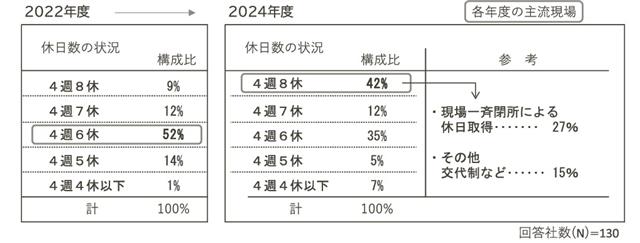 働き方改革アンケート「4週8休」4割で主流化/現場一斉閉所は途上/電設協