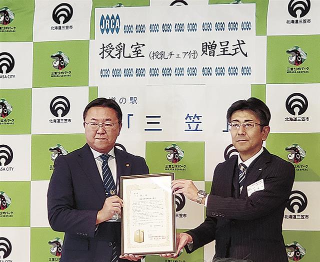 日本道路建設業協会北海道支部(中山晶敬支部長)は18日、三笠市の道の駅「三笠」で簡易設置型授乳室の…