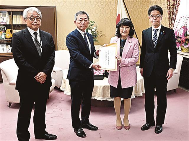 片山財務相(中央右)に 要望書を手渡す今井会長