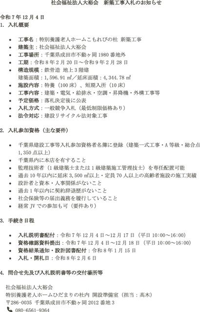発注公告・社会福祉法人大裕会 | 建設通信新聞Digital