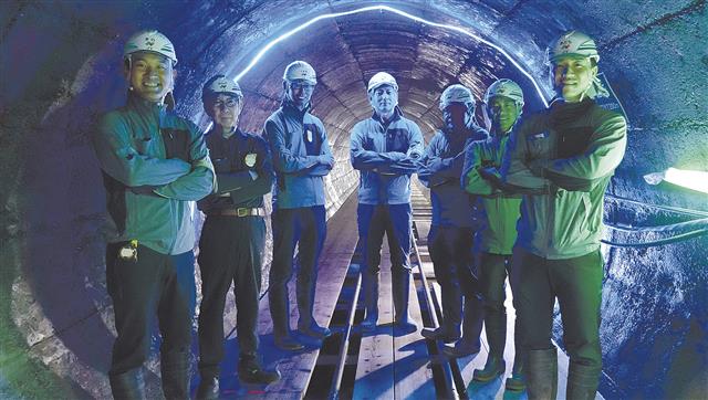 導水路の内部(中央が井上所長)