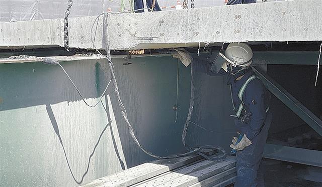 馬蹄形ジベルに対応した同工法を、東北自動車道胆沢川橋床版取替工事の石田橋の上下線で初めて採用した。床版撤去工程のネックだったジベルの切断作業で、管理基準値を満たすWJ切削精度を確保しつつ、想定した速度で桁から床版を撤去した。