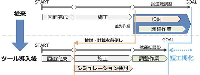 試運転調整支援ツールによる調整期間前倒しのイメージ