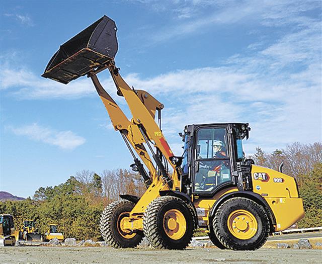 キャタピラージャパンは、ホイールローダのCat908にハイリフト仕様を追加した=写真。上位機種のC…
