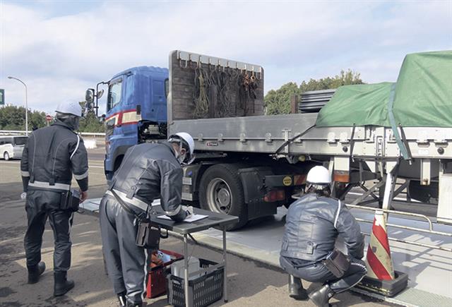 現地取り締まりによる措置命令(全国累計)は、20年度947件、21年度1286件、22年度1474件、23年度1774件と増加傾向にある。違反の6割が「重量・軸重超過」で、残り4割は「寸法」となる。重量・軸重超過の1位は、鋼製品を積載する車両で全体の3割を占める。2位は食料品、3位は建設機械を積載するトレーラー車両となる。寸法違反で最も多いのが、自動車を積載した車両の長さ・高さオーバーという。