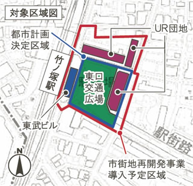 区は、竹ノ塚駅周辺地区の将来像を「にぎわい・安心・豊かなみどりでつくる人が主役の竹の塚」としている。駅高架化を契機として、URによる竹の塚第三団地のストック再生事業なども進んでいる。三者は22年3月に、相互に連携してまちづくりを検討する基本協定を締結していた。