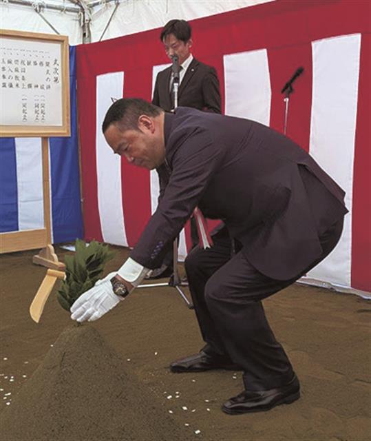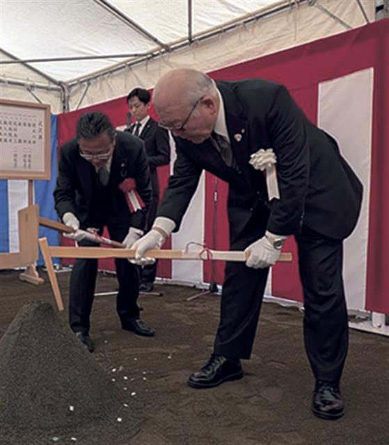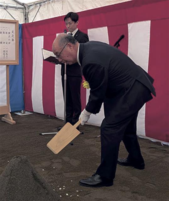 神事では、鎌(かま)入れを佐藤総合計画の鉾岩崇社長、鍬(くわ)入れを大島清伊奈町長と上野尚徳議会議長、鋤(すき)入れを佐藤工業の平間宏社長が行った。4氏をはじめ、丸山優子山下PMC社長、本田兼三伊奈町作業所長(佐藤工業東京支店)らが玉串をささげた。