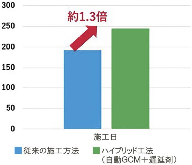 2025年8月に岐阜県発注の内ケ谷ダム本体工事の堤体工で、施工方法を試行した。現場の通信環境(無線LAN)で自動施工が可能なこと、自動施工部・遅延剤散布部ともに良好な打ち継ぎ面の品質を担保できること、遅延剤の散布により休日前のコンクリート打設でも品質確保が可能であることを確認した。