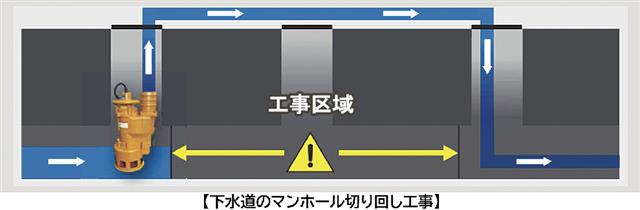 更新ニーズが増加している下水道。実際の改修現場では、施行区域に下水が流れ込まないよう、区画の手前で…