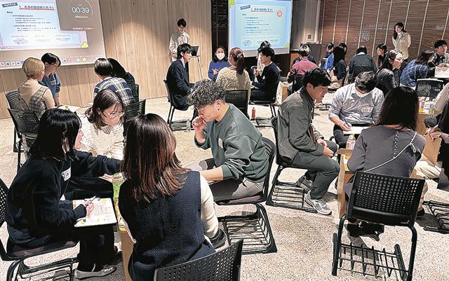 応用地質の若手社員は21日、キャリアを考える異業種交流会に参加した=写真。同社が推進しているエンゲ…