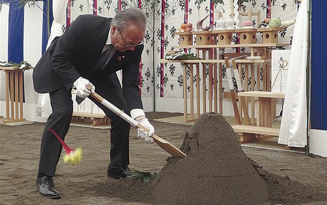 神事では、梓設計の有吉匡社長が鎌(かま)入れ、山本一太群馬県知事と井下泰伸県議会議長が鍬(くわ)入れ、堤義人清水建設代表取締役副社長が鋤(すき)入れを行った。その後、関係者が神前に玉串をささげた。