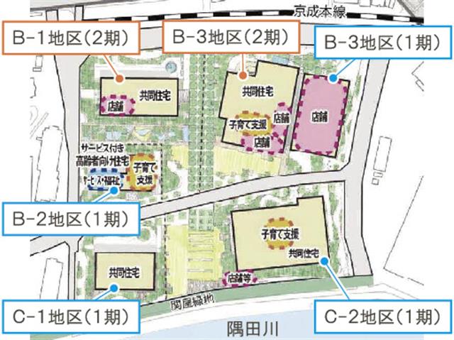 このほか第1期工事では、B-2地区のサービス付き高齢者向け住宅、B-3地区の商業棟などを30年度までに整備する。