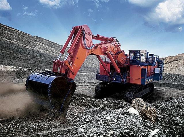 日立建機 バックホー仕様の超大型油圧ショベル「EX5600-7P」を発売した=写真。運転質量は55…