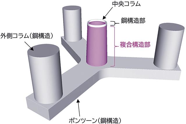 鹿島とカナデビアは、浮体式洋上風車基礎を対象とした複合(ハイブリッド)構造の設計手法を確立した。セミサブ型浮体の中央コラムに鋼・コンクリートの複合構造を適用することで、コスト合理化を図れる。同構造を対象に日本海事協会(ClassNK)が風車支持構造物技術審査を基にした認証を実施し、証明書を発行。浮体式を対象とした技術認証は国内初の事例となる。