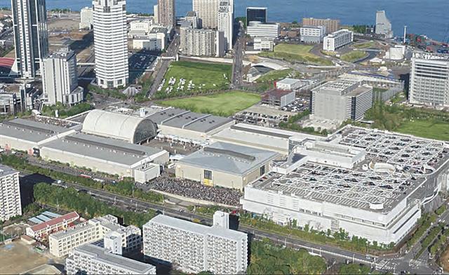 1、2号館は26年度内に基本設計を終える見込み。設計は東畑建築事務所が担当している。規模は1号館が2階建ての展示面積5087㎡、2号館が2階建ての展示面積6729㎡。