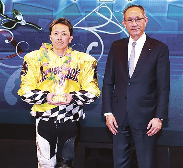 • 優勝の高橋選手にトロフィー/浜松オートレース場で大成ロテック杯