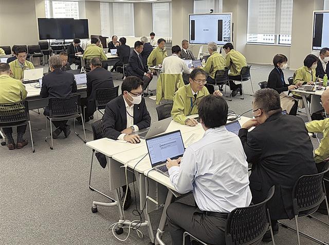 東亜建設工業は、BCP(事業継続計画)訓練を実施した=写真。南海トラフ地震を想定し、早川毅社長をは…