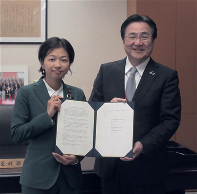 文部科学省は6日、東北大学と「D-EST」(被災地学び支援派遣等枠組み)に基づく災害時体制強化の一環として、同省と国立大学との間で、災害時の連携協力協定を初めて結んだ。災害発生時に学校でのソフト・ハードの被害状況確認や学校施設の応急危険度判定を行うために派遣される文科省職員などの活動拠点として、大学施設を利用するための手続き迅速化などで協力する。6日に東北大学の冨永悌二総長が福田かおる文部科学政務官を表敬訪問し、協定を結んだ=写真。