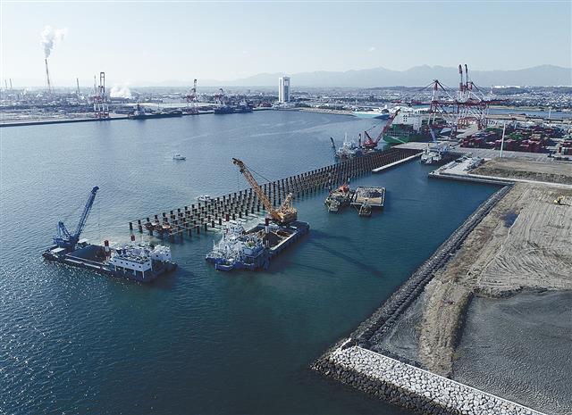 【令和7年度 四日市港霞ヶ浦北ふ頭地区岸壁(-14m)基礎工事(その2) /五洋建設/供用中岸壁に配…