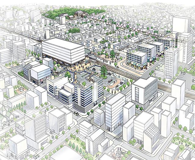将来イメージ(市が独自に作成した構想段階のイメージであり、関係権利者や関係機関との協議等を経て確定したものではありません) 愛知県稲沢市は、国府宮駅周辺再整備基本計画を策定した。駅前空間、駅西、駅東の3エリアを設定し、取り…