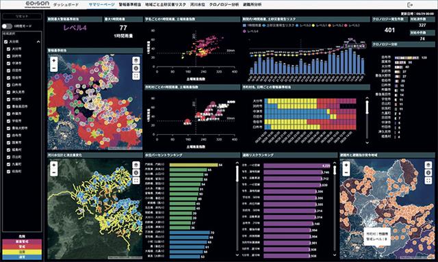 エジソンは、気象や河川水位のほか、避難所の感染症発生状況や救急車の走行ルートに至る多様な情報を地図上に集約・可視化する。さらにAI(人工知能)を活用し、15時間先までの土砂災害リスクや水位を予測。現場に設置したUAV(無人航空機)ポートから自動で被災地を定期的に撮影し、3Dデータ化する仕組みとも連携する。これらの情報は、現地対策本部や関係機関にリアルタイムで共有され、データに基づく合理的な意思決定を支える。