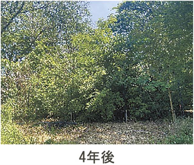 同手法では、光を好む先駆種が早期に成長し、景観性の高い森林を短期間で形成。日陰がつくられ、土壌環境も整うことで、日陰を好む遷移後期の種が安定的に生育する。先駆種は、遷移後期の種に樹高を抜かれると光の供給が減り、寿命を迎える。その後、遷移後期の種が生育することで、自然本来の過程を経て、強く良質な森林を創出する。
