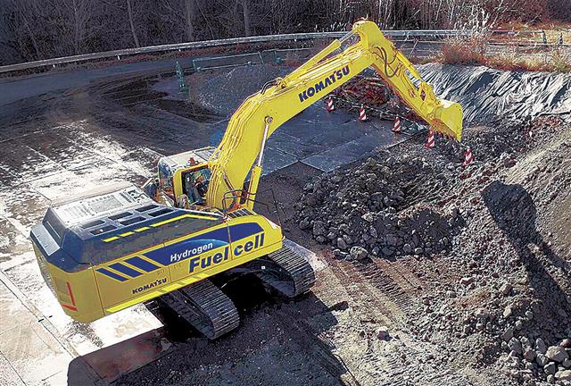 大林組と岩谷産業、コマツの3社は、高速道路の防災対策工事の現場で水素燃料電池を搭載した中型油圧ショ…