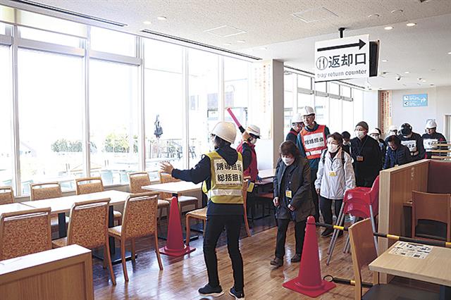 NEXCO中日本名古屋支社は17日、岐阜県恵那市の中央自動車道恵那峡SAで防災訓練を実施した=写真…