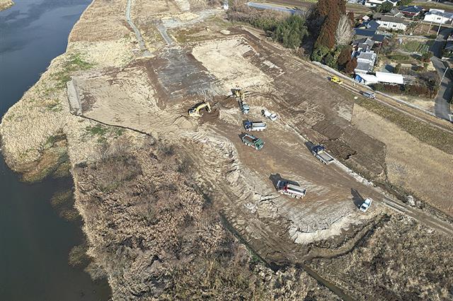【熊本県 小原地区旧堤掘削工事/運行の見える化で安全確保】 本工事は、1級河川菊池川において、旧堤防…