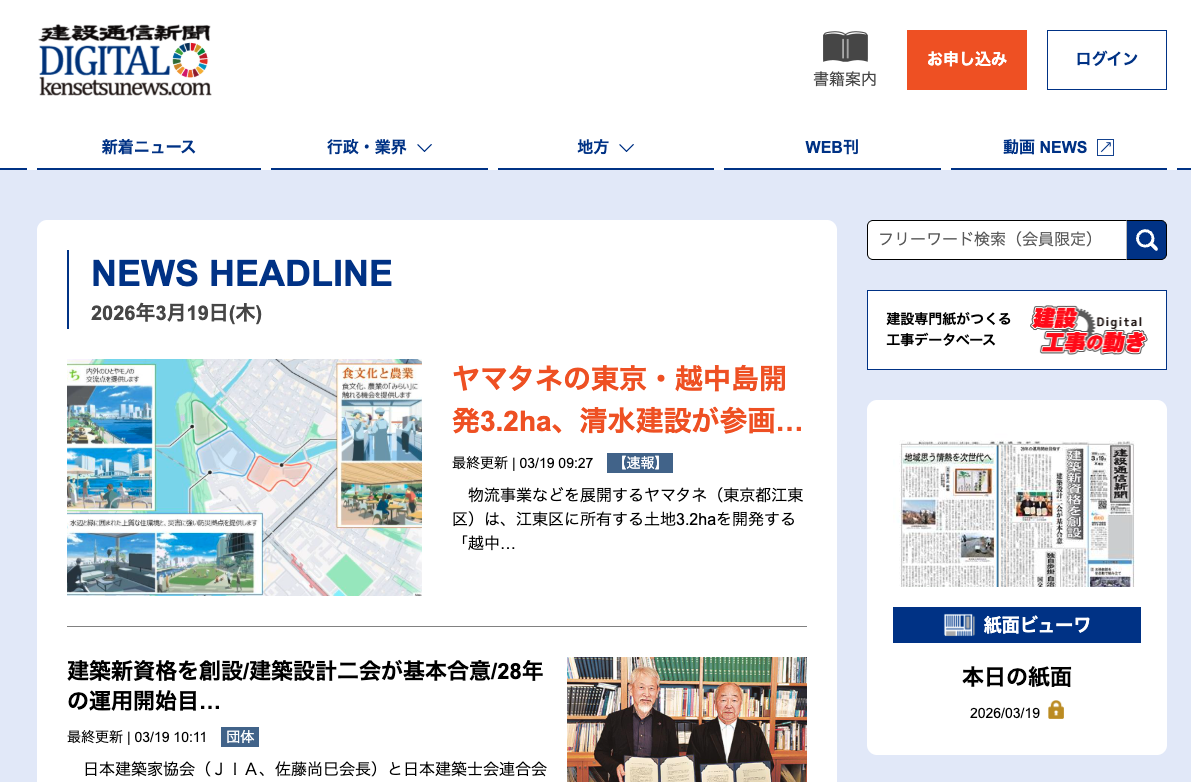 日刊建設通信新聞社は、「建設通信新聞 DIGITAL(電子版)2カ月無料キャンペーン」を実施します。4月1日から6月30日までの3カ月間に、電子版を新規に申し込むお客様が対象で、年間購読料を一括払いすると、2カ月分が無料となるキャンペーンです。本特設ページからのお申し込みがキャンペーンの適用対象となります。下記フォームから必要事項を入力してお申し込みください。なお、紙媒体はキャンペーンの対象外です。
