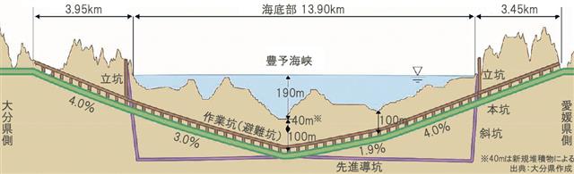 中国・四国・九州大分県は23日、同県と愛媛県を結ぶ豊予海峡ルートについて、海底トンネルを整備した場合の概算事業費を…