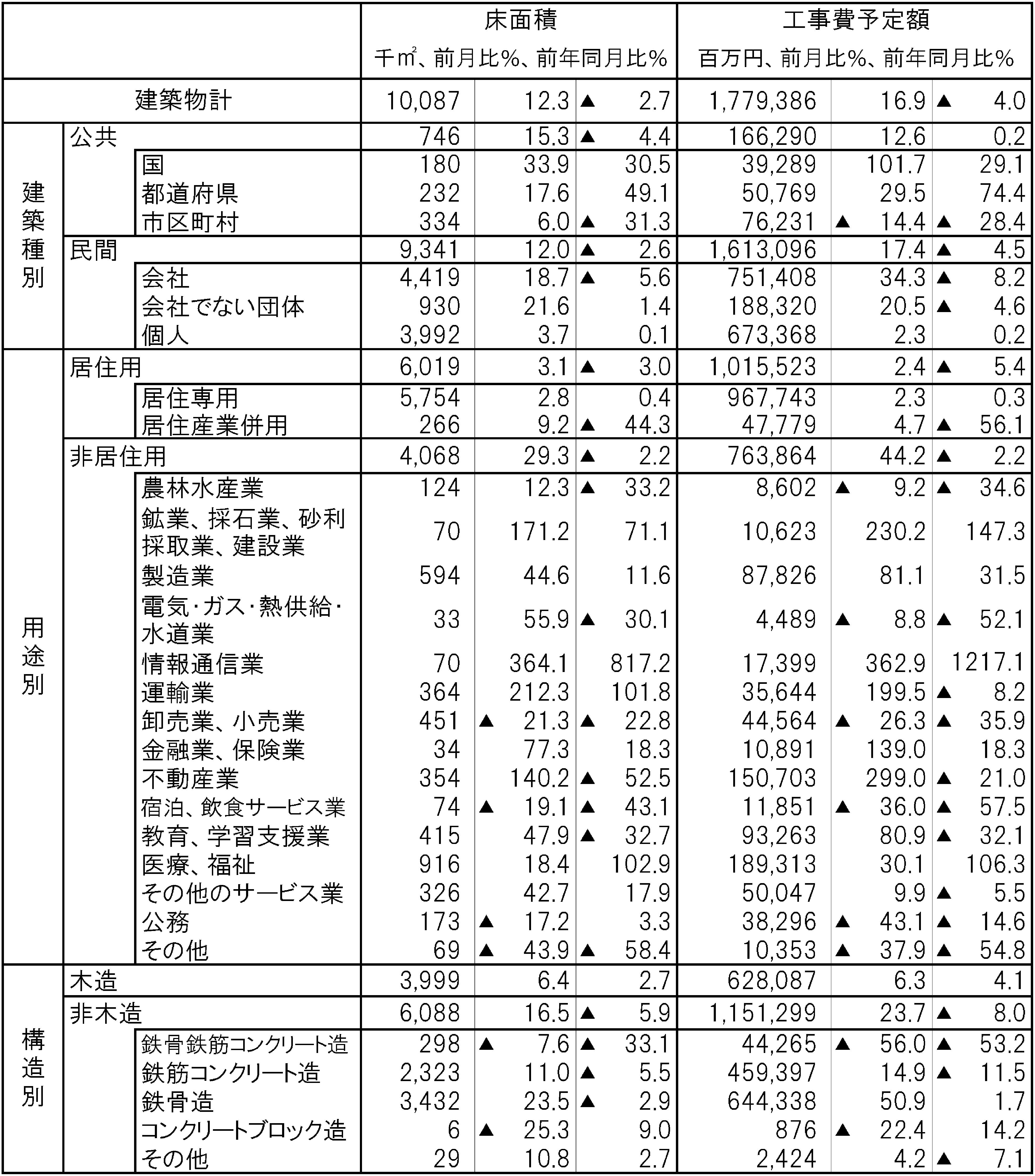 国土交通省がまとめた3月の建築着工統計調査報告によると、全建築物の着工床面積は1008万7000㎡…