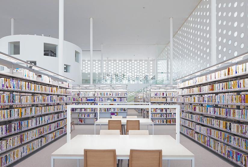 【パンチングウオールが囲む4面大空間】 金沢市が建設を進めていた「金沢海みらい図書館」が完成した。…
