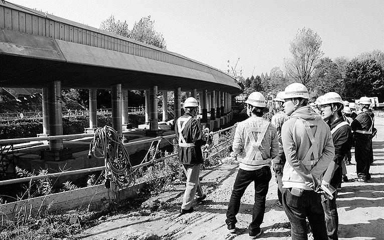 東北工大生が広瀬川橋を現場見学/曲面精度に感嘆の声/日建連東北鉄道委員会