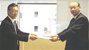 要請書を手渡す下出部長(左)