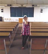 テレビのロケで、母校の視聴覚教室。 ボーカルとしての「デビュー」ステージでもある