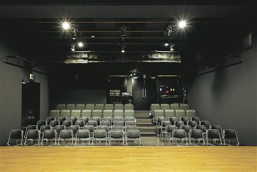 舞台から見た客席。72席の小劇場だが、高い安全性と品質を確保している