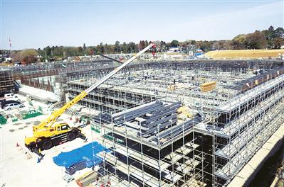 現場上空が自衛隊基地滑走路の直線上に当たるという厳しい条件の中で施工している