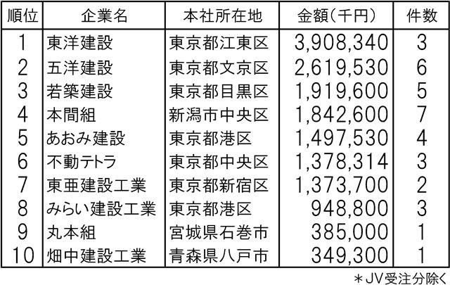 工事トップは東洋建設/東北整備局16年度港湾空港関連