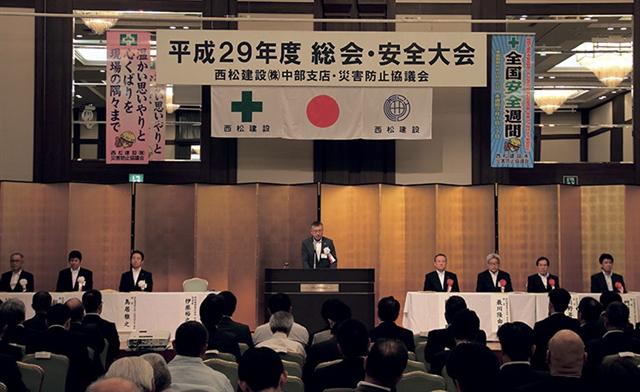 【現場に緊張感を】  西松建設中部支店(伊藤裕之支店長)と支店災害防止協議会(鬼頭秀登会長)は名古屋…