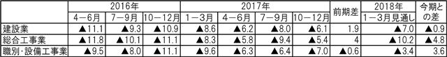 10―12月期中小建設業業況DI/15期連続でマイナス