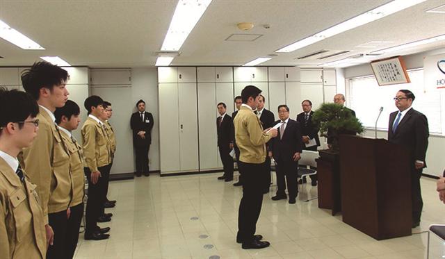 効率よく仕事を/本間組が入社式