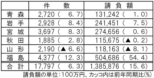 6県公共工事保証取扱い/上期請負額15%増1.3兆円/東保証まとめ
