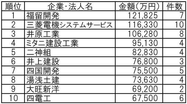 福留開発が受注額首位/四国整備局上期工事発注